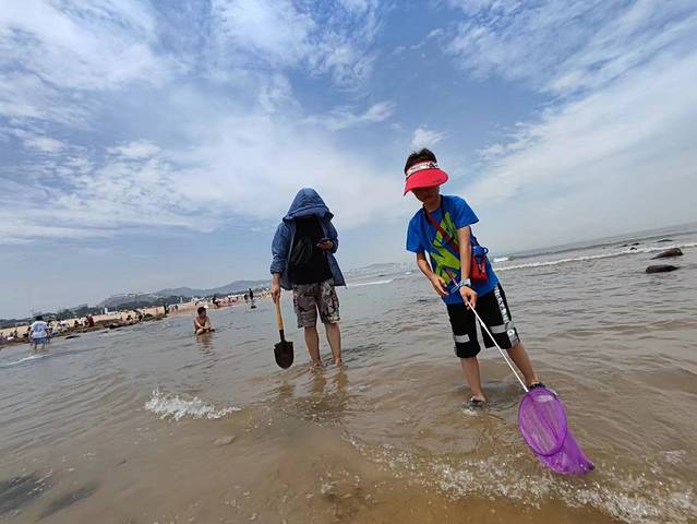 游客们带着各式装备,铲子、网兜、夹子……在大海边,都是一个个孩子,这是赶海带来的快乐。