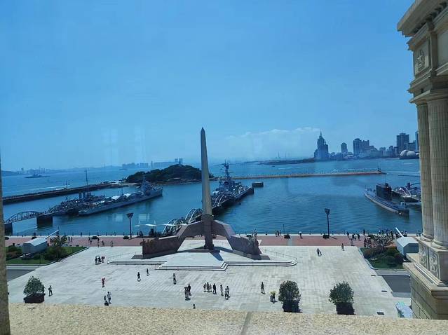 2023年4月23日上午,为庆祝中国人民解放军海军成立74周年,中国海军在青岛海军博物馆隆重举行致敬人民海军英雄仪式。所以,旅途安排的这个博物馆意义重大。我们参观的路线是室内场馆区、海上舰艇区,最后是陆上装备战区。幸运的是远观了退役的中国首艘核潜艇,不幸的是得单独提前预约,不能有幸前往,只能远远观望大黑鱼的雄姿。