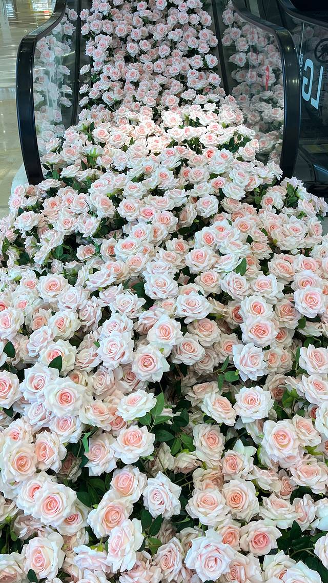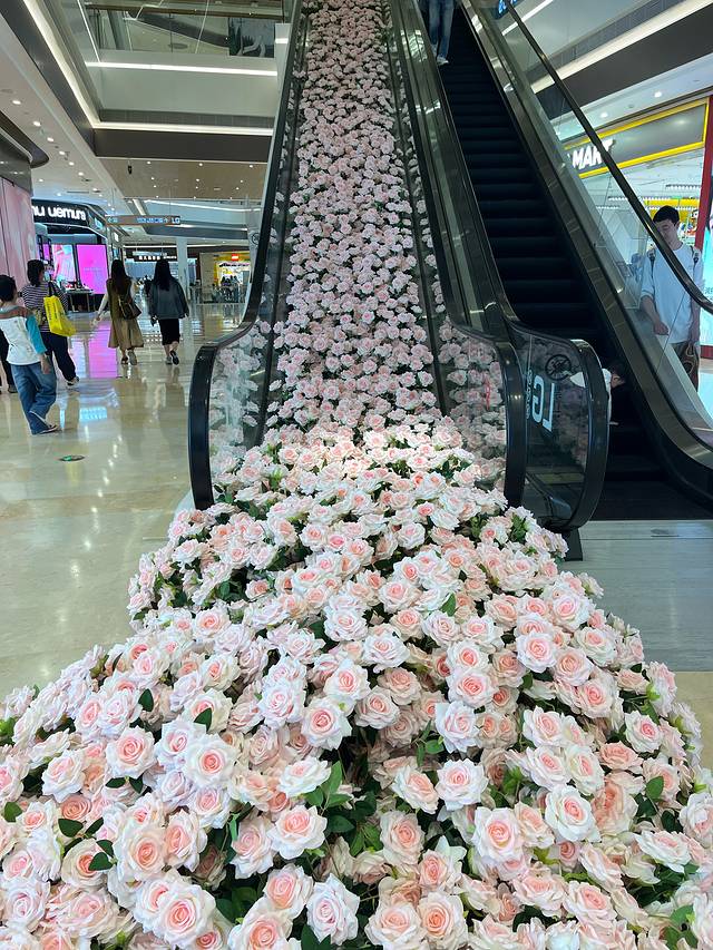 宝龙一城的电梯花海,真是美得令人心醉!手扶梯上,铺满了层层叠叠的粉色花朵,仿佛一道粉色的梦幻瀑布倾泻而下,浪漫与温馨的气息瞬间弥漫在空气中。每一朵花儿都娇嫩欲滴,散发着淡淡的香气,让人仿佛置身于童话世界之中。在这片粉色的花海中,人们的心情也变得格外愉悦,仿佛所有的烦恼都被这浪漫的气息所融化。这真是一道令人难以忘怀的粉色风景线。