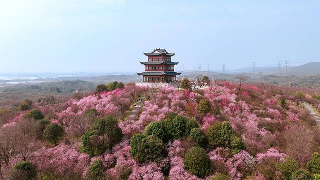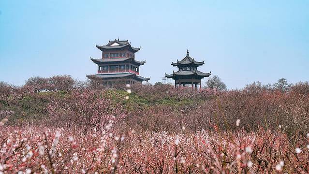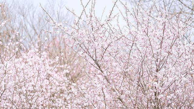 整个园区很大,有成片梅林梅山,放眼望去,粉嫩嫩的一片,应和着春日的蓝天白云,超美!