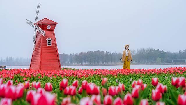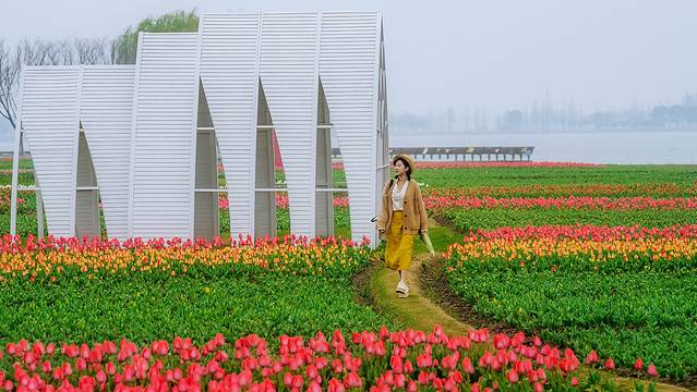 第二站一定要去滨湖花海,四季都有不同的花花,这个季节郁金香开的正好,大片花海超美。