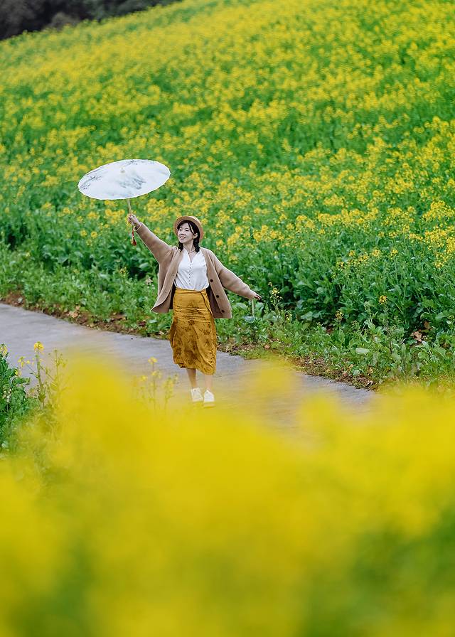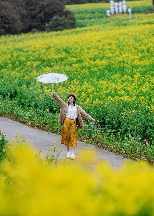 花海中间也有小路,花田里还设置了很多打卡机位,很适合拍照。我宣布,这里就是我心目中,南京最美的油菜花田!
