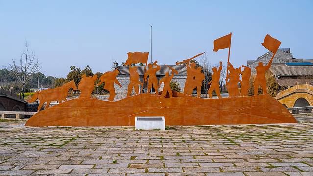 红色李巷并不是一个单一的自然村,而是由好几个自然村组成的一个统一的革命抗战参观圣地。所以这里是开放式的参观形式,可以自己在村子间参观、行走,田间地头,有很多反应当时革命抗战期间新四军在这里驻扎的故事的雕塑,让我们更好的代入到那段光辉的历史岁月之中去。