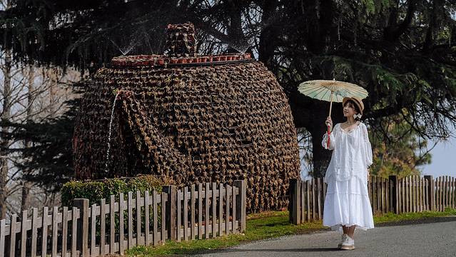 黄龙岘金陵茶村,有着“扬子江心水,黄龙岘上茶”的美誉。连绵起伏的茶山,以茶为主题的农家美食风情街,活动丰富的茶文化体验馆,这里的一切,都与茶有关。所以,映入我眼帘的第一景,便是这可爱的茶壶雕塑喷泉,在通往云龙亭的山路上,一个可可爱爱的大茶壶,汩汩的倒着清泉如许,两侧是绵延无尽的茶田,也是非常应景了。