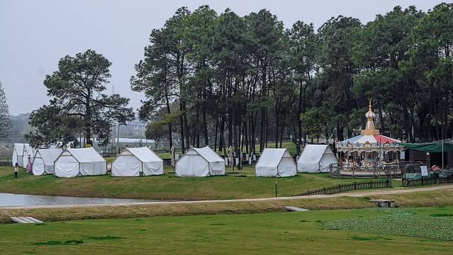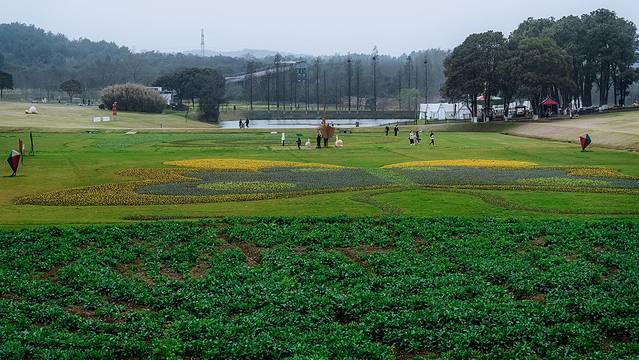 大草坪就在油菜花海的正对面,平坦开阔,可以露营野餐,现在也有春游旅游节的活动,簪花、汉服、面部彩绘等活动,可以在这边换上汉服去花田美美的拍照。还有很多适合小朋友的游乐设施。