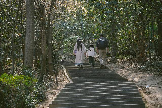 佘山的运动强度非常适合小朋友,我们从东大门进,从山脚爬到山顶大约45分钟。山路大多为斜坡和台阶,爬起来总体不算太累~