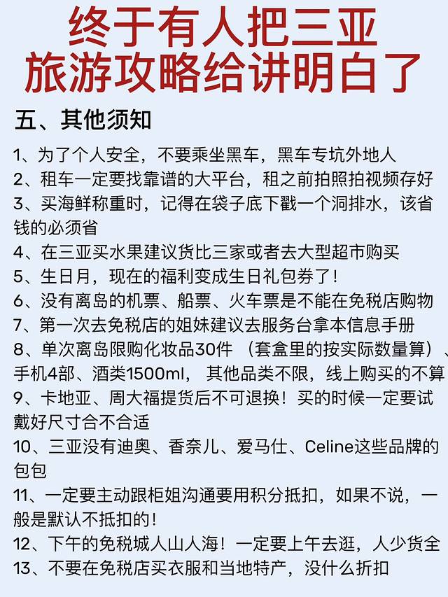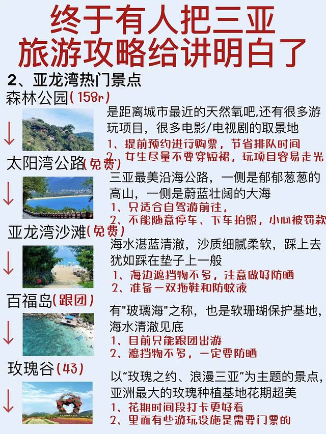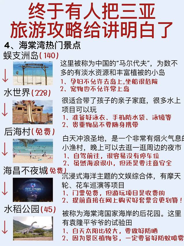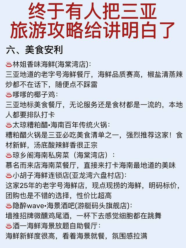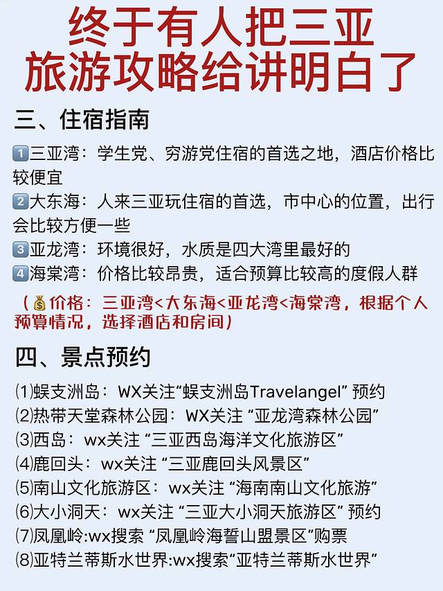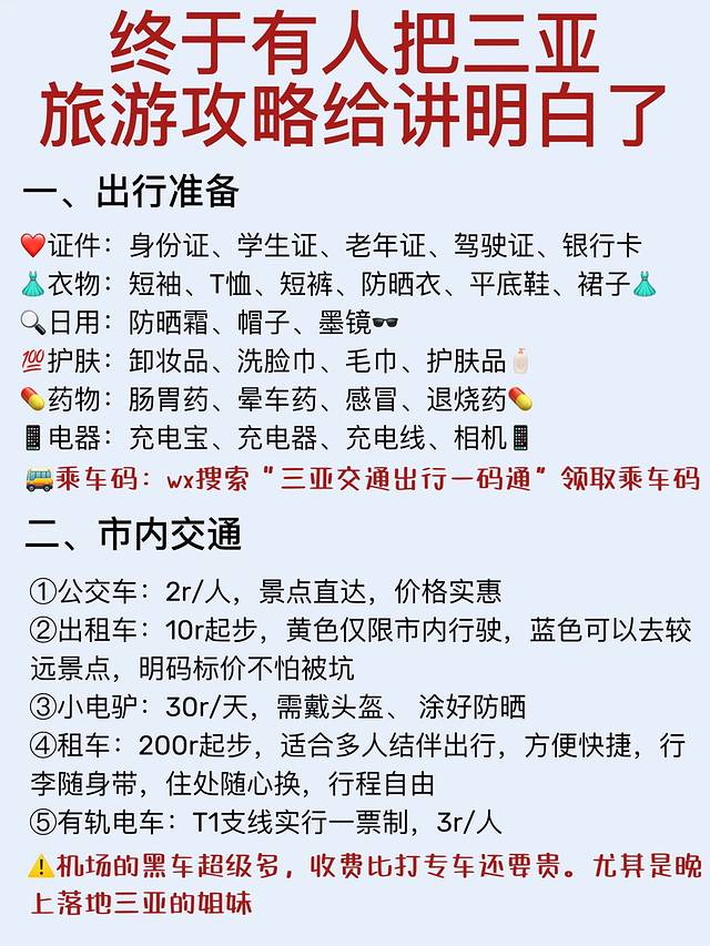 这篇攻略包含了出行准备、三亚交通、三亚住宿、防坑指南以及三亚美食等方面✅全都是干货