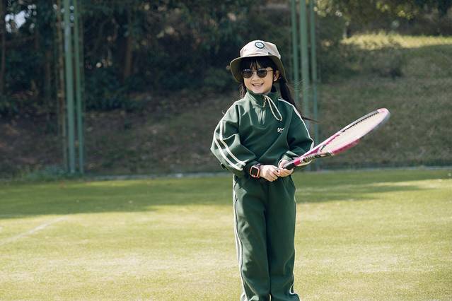 给饭饭换上一身绿色的运动服装,跟着专业教练,在天马乡村俱乐部做一天运动系女孩。
