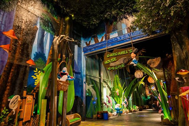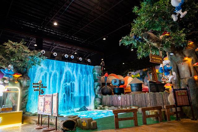 一踏入蓝精灵主题乐园,就被可爱的蓝精灵雕塑所包围。仿佛步入一个童话世界,这里的一切都散发着令人愉悦的魔法氛围。记得拿地图,可以根据导航地图选择自己心仪的项目玩。