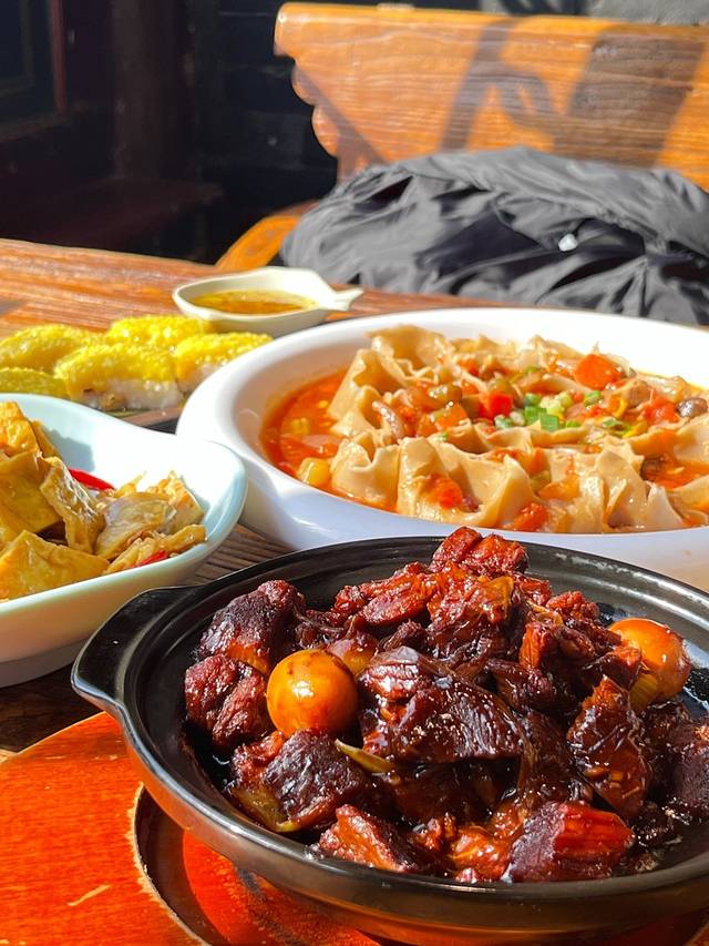 这家店主卖晋菜,我个人感觉味道非常好,而且价格也比较正常,不是会宰客的那种景区的店。他们家的招牌菜是黄米凉糕和老醋焖牛肉,味道确实对得起招牌菜这个名称,还有栲栳栳、莜面鱼鱼、香醋鸡蛋、铜火锅都是不会踩雷的美味。