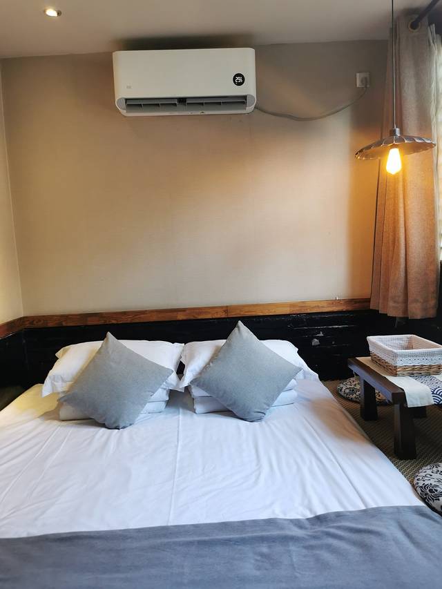房间的布置有种淡淡的复古味道,不过洗手台和淋浴、空调这些也都有。