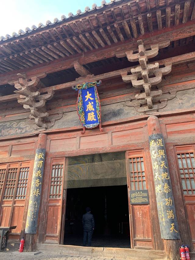 文庙其实就是祭祀孔子的地方。平遥文庙始建于唐朝贞观初年,大成殿在金大定三年重建,是中国文庙中仅存的金代建筑。