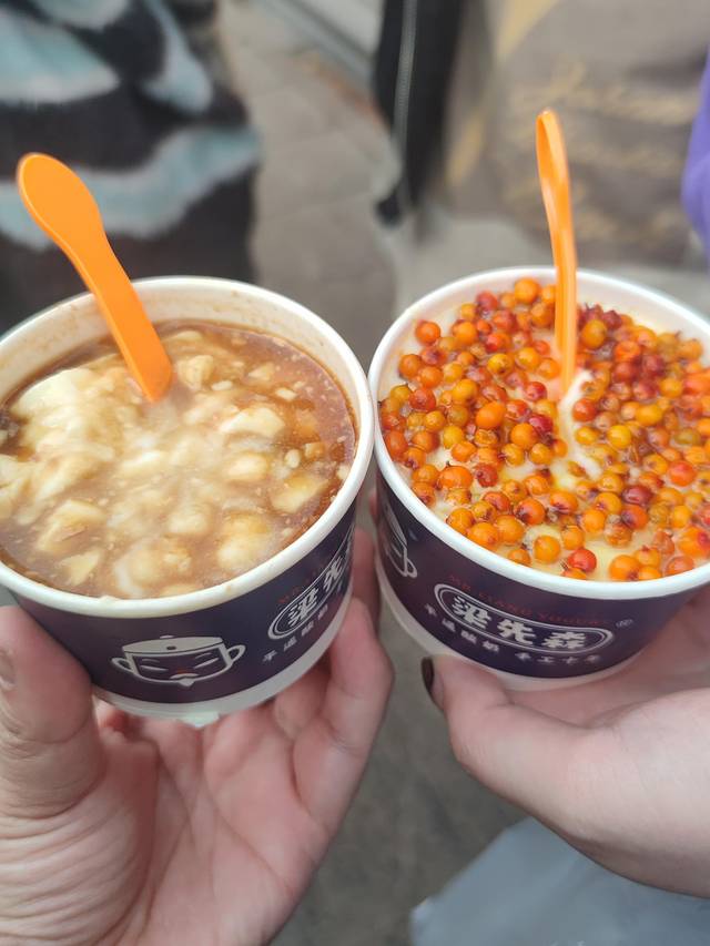一家文艺小店,路过就走不动道的那种,和老板聊天了解到这是一家十年老店,十年来只为做好每一杯酸奶,我们点了店里老板原创的老陈醋酸奶和招牌沙棘酸奶,之前也尝过其他地方的酸奶,别人家都是只有上面有一层配料,但是他们家是酸奶下面也是有满满的配料的, 比如 说沙棘酸奶,下面也是满满的沙棘,酸酸甜甜的,味道也特别好吃~
