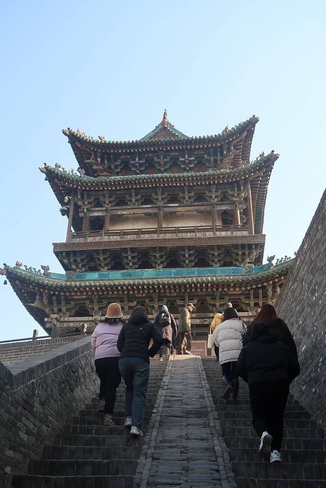 平遥 古城墙全长6.4公里,经典游览路线是从迎薰门登城墙,站在城墙上俯瞰古城,观赏保留完好的垛口3000个,小敌楼72座,感受古城的沧桑和坚韧,最后从云路风情街出口下城墙。