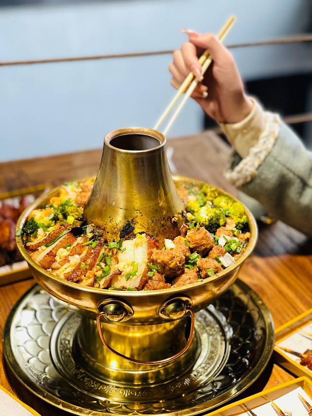 地址在南大街上景点百川通对面,专做铜火锅,味道很棒!各种食材层层堆积在一起,炭火炖煮还多了一份鲜香,分量也足,满满当当的一份,两个人都没吃完哈哈哈,如果你不知道吃什么,那不如和朋友一起打卡铜火锅,绝对不会失望!