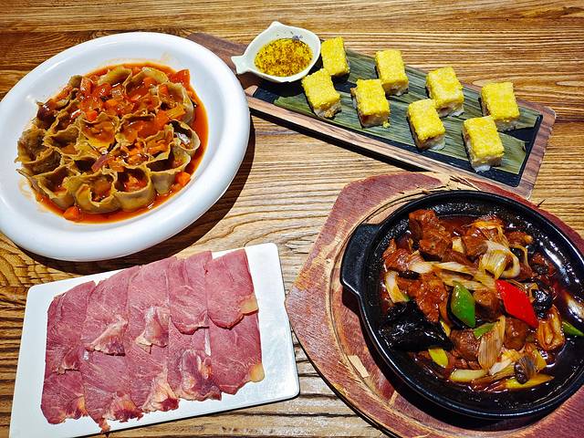 听推荐点了几个招牌菜,图片可能看不出来,实际份量真的好大啊,而且巨好吃!黄米凉糕清凉爽口,黄米的清香和甜甜的桂花蜜很好融合,我的心头爱!老陈醋焖牛肉很下饭,滑嫩的牛肉裹上满满的汤汁一口下去,酸中带甜简直不要太好吃!烂糊白菜汤暖身又好吃,里面还有虾仁、肉糜等,很大一份,都够好几个人吃啦~其他的 比如 糖醋丸子、香醋鸡蛋、酸汤莜面鱼鱼等味道也是真不错,一个菜都没有踩雷!