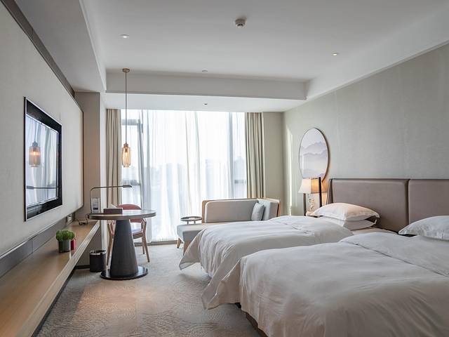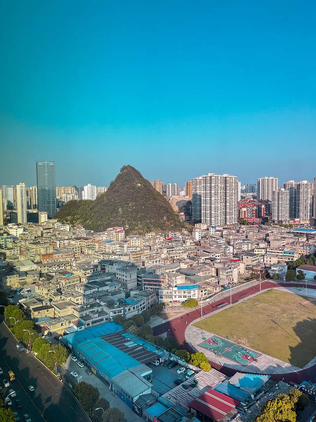 晚上我们自然住在安顺半山酒店,落地窗外是满城风景,不远处竟然真有坐座小山峰!