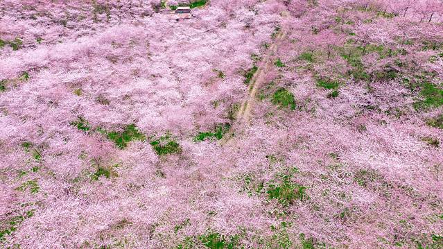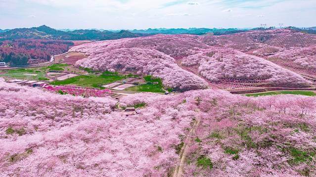 安顺黄腊樱花园的春光潋滟,是由万亩樱花齐绽放来的。