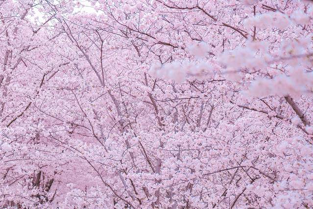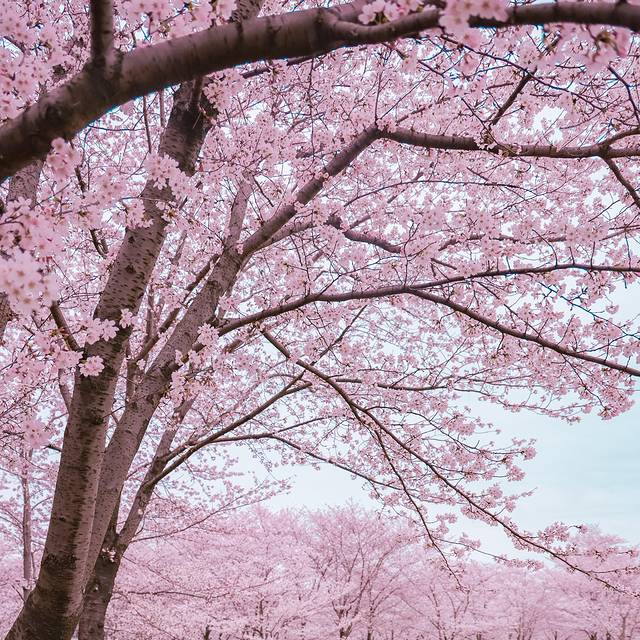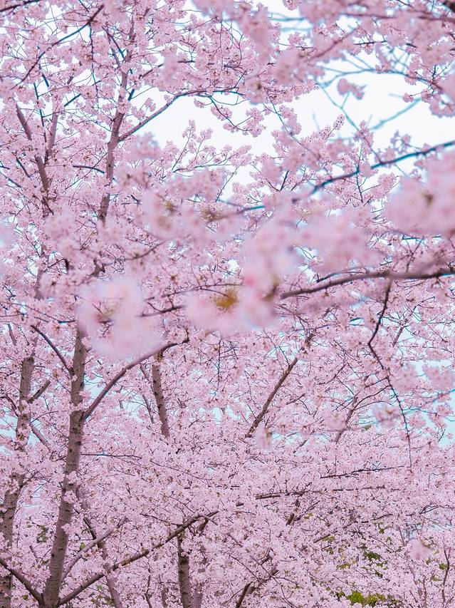 这里不用门票,沿路全是樱花树,随便跨一步就能到满是花的林子里。
