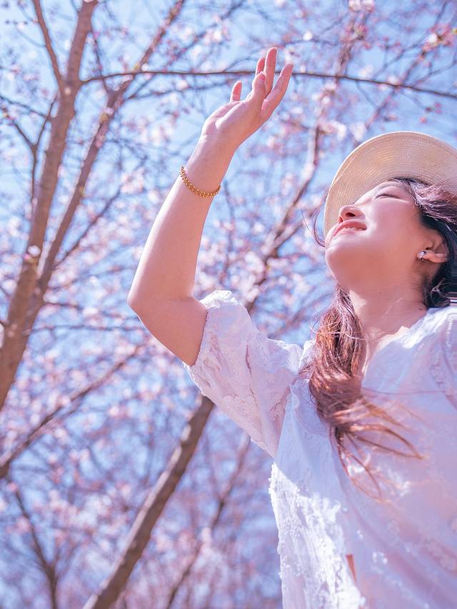 樱花如云似雾,粉嫩的花瓣在春风中轻轻摇曳,很多小仙女穿粉白色系汉服,仙气飘飘,樱花园真就如仙境一般。