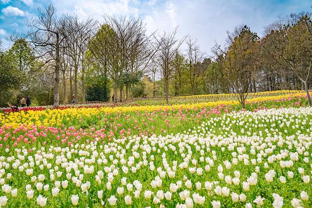 园内郁金香竞相绽放,色彩斑斓,如同春天的使者,为我们带来了无尽的惊喜。