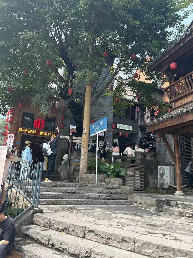 十八梯就在山城步道附近,可以步行前去。去了十八梯后我们沿着崖壁走了一圈,好像是两个景点。南纪门城墙那个方向。走了很久太累了,第一天没想到打车,一直是步行,真的会很累