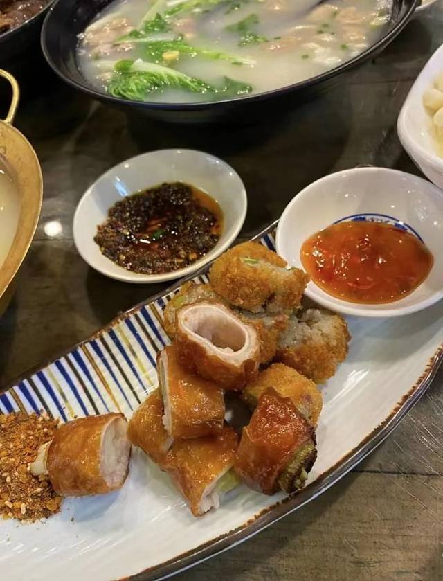 【游记肥肠】 游记肥肠市井川菜·第五代非物质文化遗产传承店游记肥肠也算的上是一家老店,据说肥肠汤是开国元帅到乐山都要打卡的美食。汤是单独加的高汤,肥肠要沾酱油吃才是绝配,酱油是小时候吃的那种黄豆酱油拌饭都好吃。