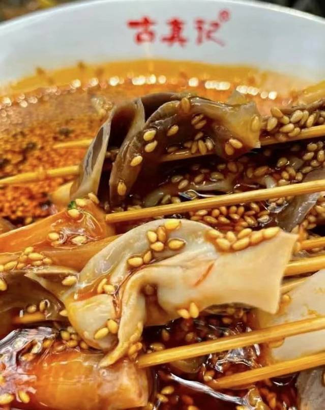 【古真记钵钵鸡】 古真记钵钵鸡·非物质文化遗产(乐山总店)乐山钵钵鸡是一定不能错过的,在乐山各种有名无名的钵钵鸡有家,但要说最适合的一定是那些藏在巷子深处的老店,钵钵鸡主要有藤椒和红油两种口味,但都各有特色。红油的香味更为均衡,入口十分香辣,多一嚼之下各色食材本来的味道慢慢在齿间流动,回甜味控制得恰到好处,那种若有若无的感觉使你忍不住一串串吃下去。藤椒的麻香味特别突出,但是又不似花椒般麻得失去知觉。