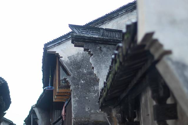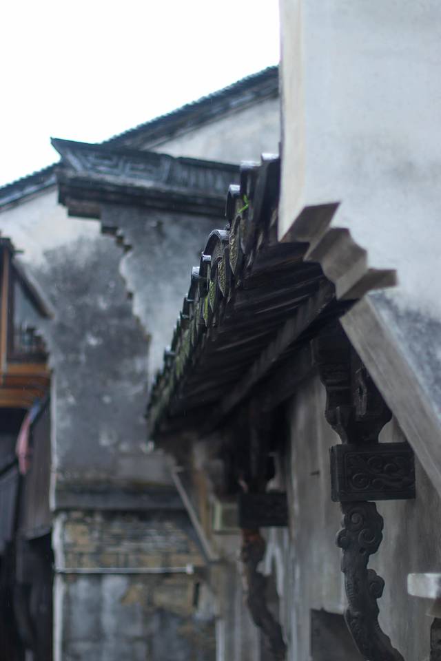 感觉古镇的这种黑白冲天房檐,有点像徽派的风格。