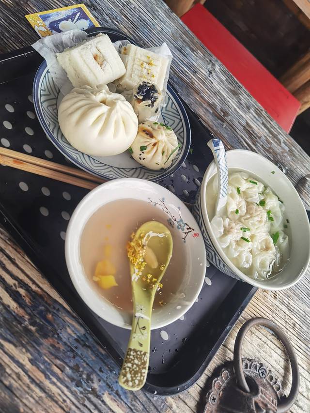西栅早上开景区之前,会有早茶客,可以去沉浸式吃早餐,贵的酒店会送早茶客的早餐券,青旅不送早餐,就直接吃什么买什么就好了。