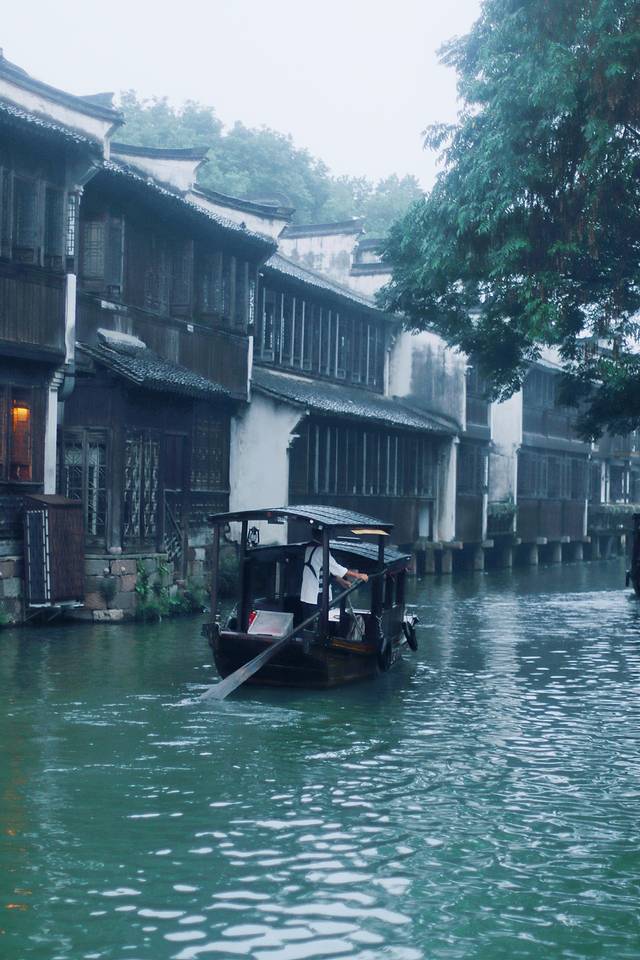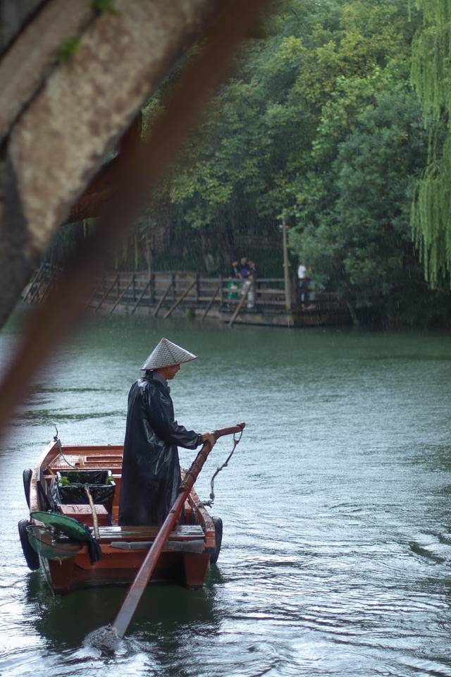很喜欢在水边看手摇船慢悠悠的从绿色中来,再驶进烟雨蒙蒙的绿色里。