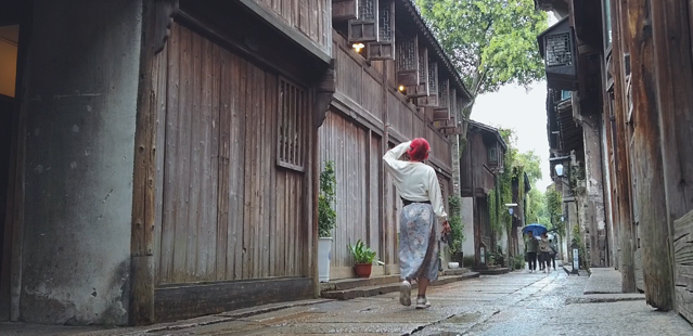 同样是坐着景区的公交车穿过市区,下雨的下午,东栅景区显得尤其的人烟稀少,但也给了我拍出无人空镜的机会。