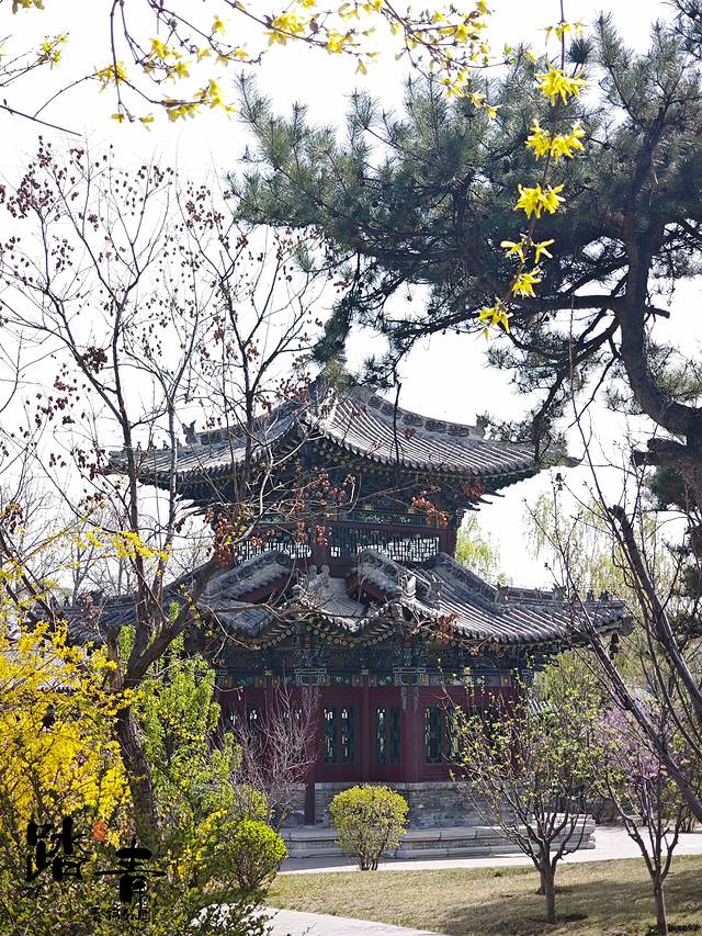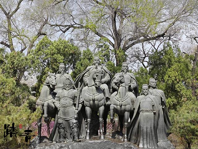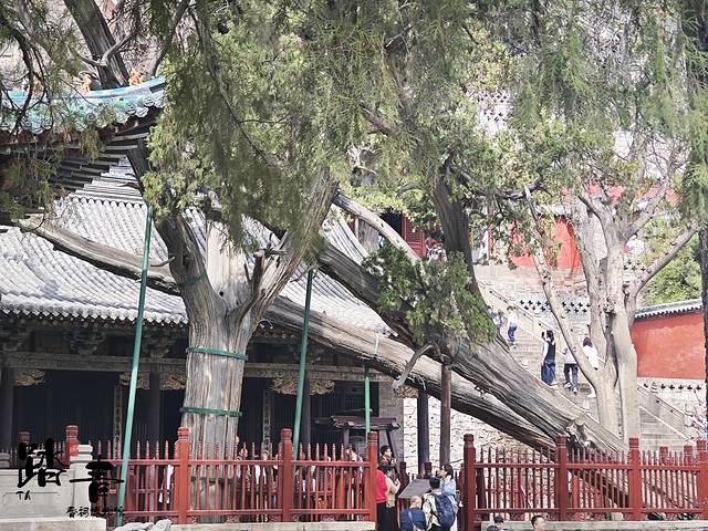 三绝-周柏:周初所植,距今逾三千年。树身向南倾斜,龙蟠虬屈,形似卧龙,俗称“卧龙柏”。宋欧阳修有诗赞曰:“地灵草木得余润,郁郁古柏含苍烟。”