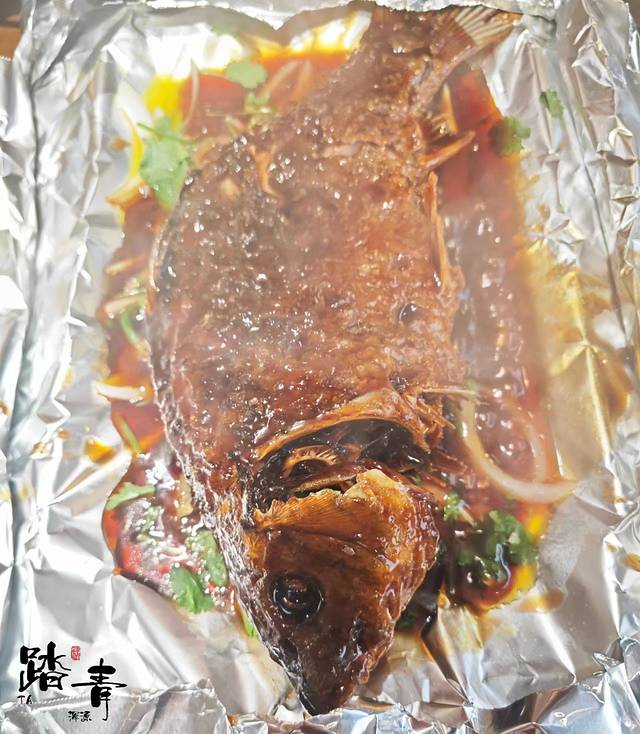 锡纸鱼,鱼是提前做好定型的,如果有人点就浇上汁,鱼算不上新鲜。