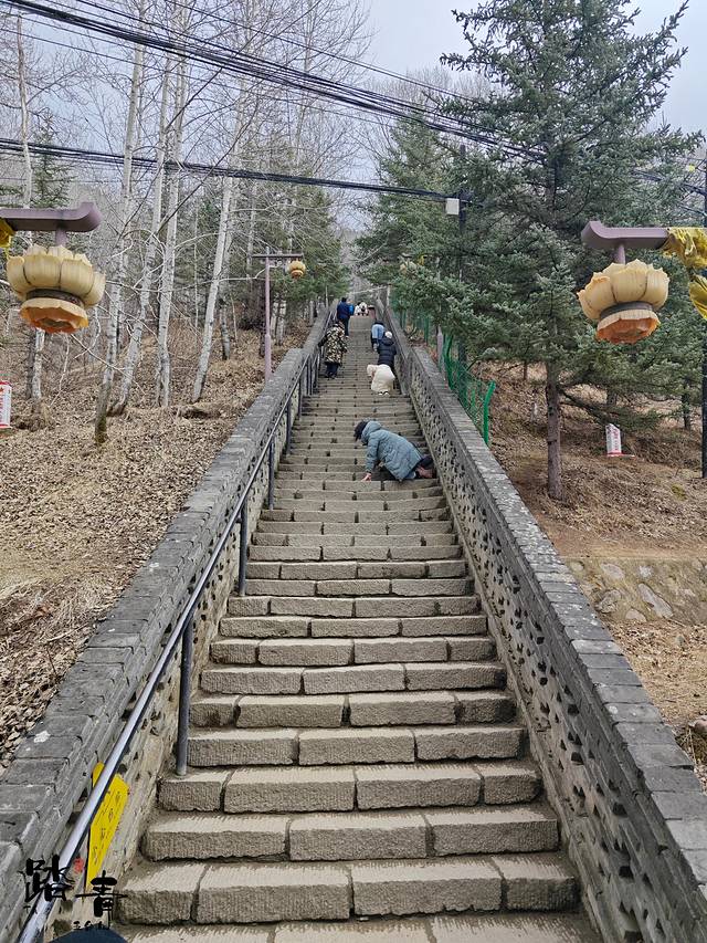 很多虔诚信徒三拜九叩地从山脚到山顶。