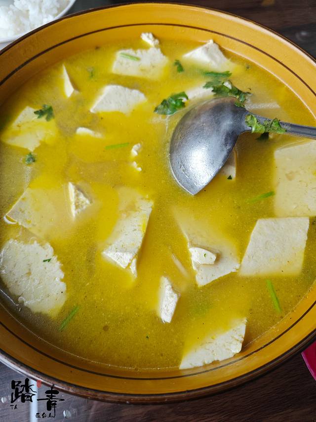 台蘑豆腐汤,豆腐酸,还有一股生豆油味,店家解释卤水豆腐就是带酸味的,东北的豆腐也是卤水做的,并没有酸味,又经其他店证实,本地豆腐并不酸,是这家的豆腐坏了。