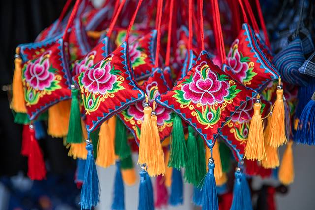 如今布依族人靠自己勤劳的双手,在少数民族文化旅游的兴起、互联网电子商务的推动下,布依人不再只是靠山吃山,如今凭借与生俱来的民族传承的技艺创造财富、延续民族传统文化和风俗风情。比如很不起眼的布依锦绣苑,全长不过百米的一条特色文化商贸街,集布依族传统手工艺品生产、展示和销售于一体。创立以来,这个平台,不断整合具备制衣、刺绣、编织布依族传统服饰物品手艺的布依族人,汇集于此,打造成为一个民族服饰展示、布依传统手工艺文化传承、当地少数民族经济发展和妇女就业的新环境。手链、盘扣、服饰、包包、挂饰、配饰等类别商品齐全,各家以一个一号来命名,很多店主,也是在各类行业比赛获得过荣誉和认证。在这里,可以更全面、直观、趣味、详细的了解布依族工艺、文化等。