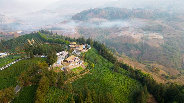 黔行第一次见到“晨曦、晨雾、晨露”,太阳冉升、晨雾缭绕、烟气氤氲,目之所及万亩青翠茶山、还有梯田、茶农…旖旎的布依族村寨风光美如画。都说贵州是“天无三日晴、地无三尺平”。也正是凭借独有的小环境、小气候、煤山地热等气候、地质优势,贵州省黔西南布依族苗族自治州普安县的部分茶园已出新芽,当地茶农迎来新年“第一采”,这也是2024年贵州绿茶的“第一采”。