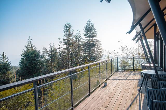 先是驱车到了万重山景区内唯一的酒店在制高点,万重山星空帐篷酒店。相对落差之高,可谓是周边喀斯特岩溶地貌中鹤立鸡群般存在。所以酒店最大特点,景观好,景色好。分布在山顶上的帐篷酒店,度假休养摄影都很不错。酒店无餐饮,可停车。