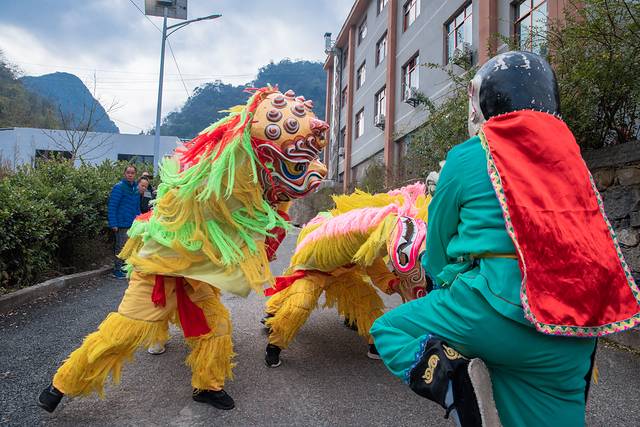 除夕之夜,全家老少会围坐在火炉旁,先祭祀祖宗天地,然后全家人互相祝福,吃团圆饭,整夜守岁。大年初一,姑娘们会争先恐后地奔向河边去挑水,谁最先挑回头担水,谁就是最勤劳最幸福的人,也以此预兆丰年。初一在家里扎彩灯,晚上一齐点燃,挂在大门口。过了初一,人们开始串门拜年。青年男女相约去“起表”,以歌声表达爱慕之情;或聚在一起在唢呐、月琴、洞箫、姐妹箫、铜鼓等乐器伴奏声中跳“打花包”。
