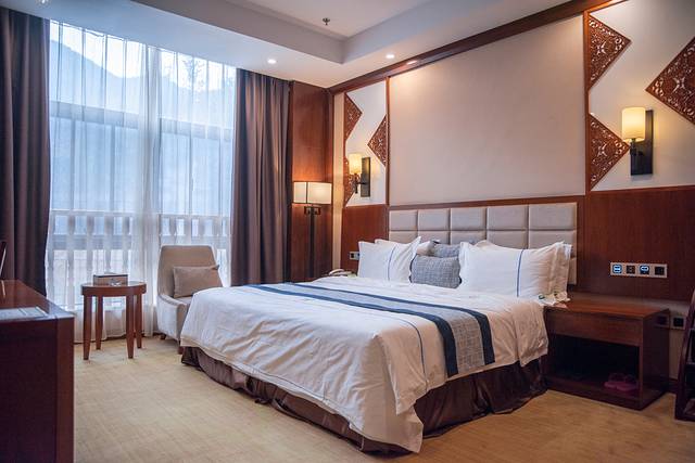 初到册亨县城,感觉地区经济发展差距依然是很明显,县城和我的家乡乡镇差不多,但是也有一些品质不错的度假酒店。距离第二天的景点也非常近,那就是榕康养中心。住宿和餐饮均有,也十分适合团队。房间内有着鲜明的民族文化元素。