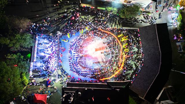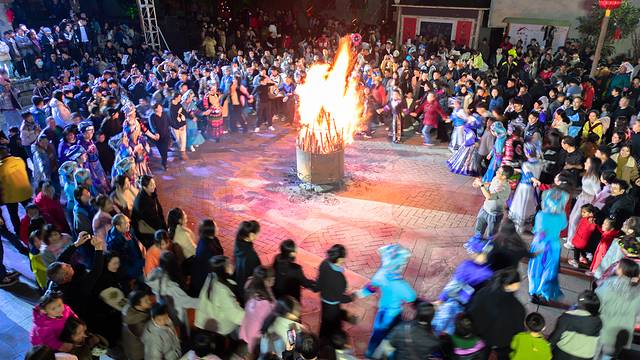 当晚最为震撼和充满年味的就是围着篝火舞龙灯,围着圈圈跳舞。夜幕之下,仅此村中市集人声鼎沸,热火朝天。