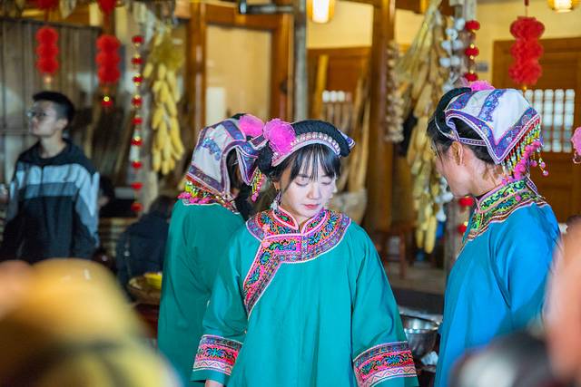 在腊月底,家家户户都会薰肉、灌香肠、烤酒、做糯粮粑粑、米花,还会缝制新衣和手帕。腊月二十三,他们会用麦芽糖等果品送灶神。此外,还会请先生写对子、贴门神和年画。