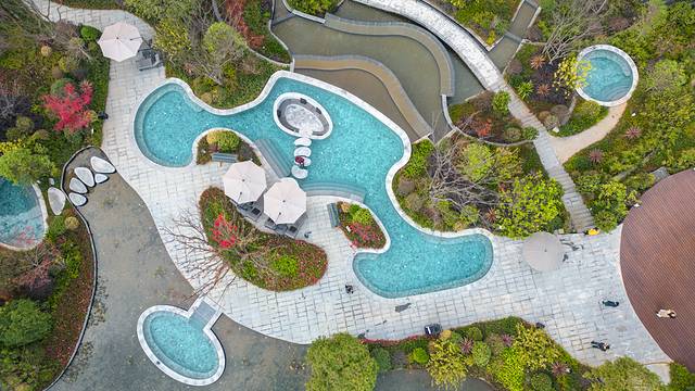 客房、餐厅、大堂、室内图书馆、亲子游乐区,都在椭圆形回廊之间。酒店的餐厅提供各种美食,从精致的早餐到丰盛的晚餐,每一道菜都让人回味无穷。特别是那道特色的云屯温泉炖鸡,鸡肉鲜嫩多汁,汤汁浓郁可口,让人流连忘返。当然,来云屯温泉酒店最不能错过的就是温泉了。酒店的温泉区有多个泡池,每个泡池都有不同的功效。我特别喜欢那个薰衣草泡池,泡在里面仿佛置身于花海之中,让人心旷神怡。冬泡温泉,夏游露天泳池,春季莺飞草长,夏季蝉鸣蛙叫,环境太棒了。