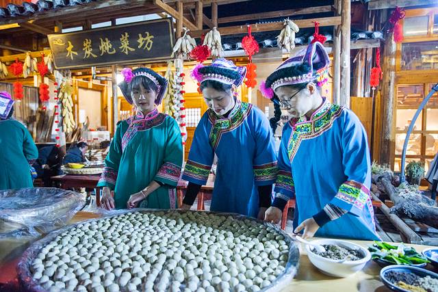 元旦前一晚,自由行普安县细寨村。这里地处深山,最为出名的就是普安红茶田。这里也是央视录制春晚的现场。当地人以布依族苗族为主,当晚当地人盛装出席,相聚在村中市集。不仅有当地特色美食,极具烟火气。还有身着不同服饰的少数民族姑娘。非常热情与汉族游客合影。服饰头饰非常漂亮。晚间,村中能歌善舞的布依族人,还有民族乐器的演奏、少数民族方言合唱。