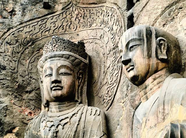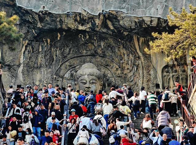 走在龙门石窟群里,步移景换,有的佛像雄健有力,气势逼人,古老民族的聪明才智,北魏和唐朝时期的经济鼎盛。