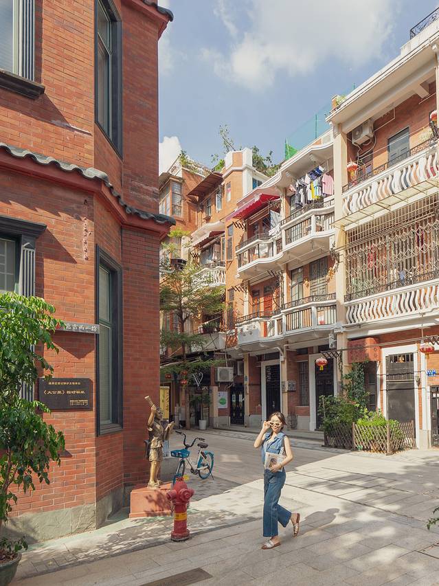 整个街区像是隐藏在闹市中的极具民国气息的古巷,小洋楼群、红砖外墙、雕花飞檐,都极具岭南情调,随手一拍非常出片,烟火气和文艺范儿在这里融合得相当美妙。因为现在仍有不少居民在此生活居住,游玩时需注意勿打扰他人隐私及生活哦。