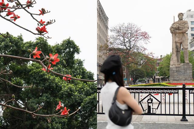 毗邻北京路的海珠广场有一排排又高又直的火红木棉,如果你正好来广州,千万别错过。