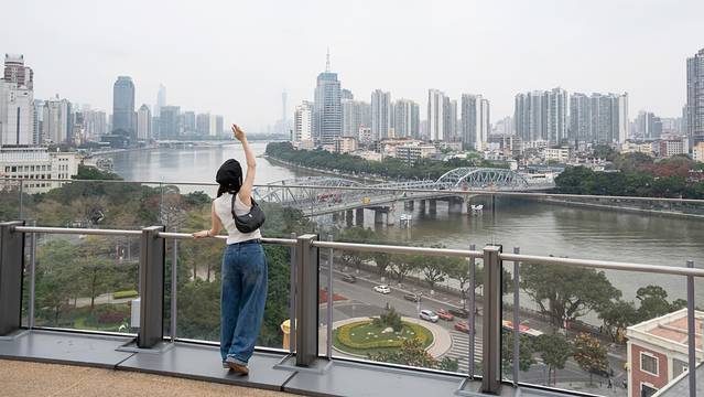 在观景平台上,看着新老广州的地标沿着蜿蜒的江畔林立——远处有小蛮腰和东西塔三件套,近处就是海珠桥、解放桥、海印桥、江湾大桥、海心桥,最远甚至能看到猎德大桥,是广州能看到最多跨江大桥的地方!饱览美景的同时再与广州塔、海珠桥来个同框照,大片随手就有。