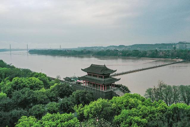 登上城墙,能看到赣江上的浮桥,浮桥连通赣江两岸,让赣江变成了坦途。